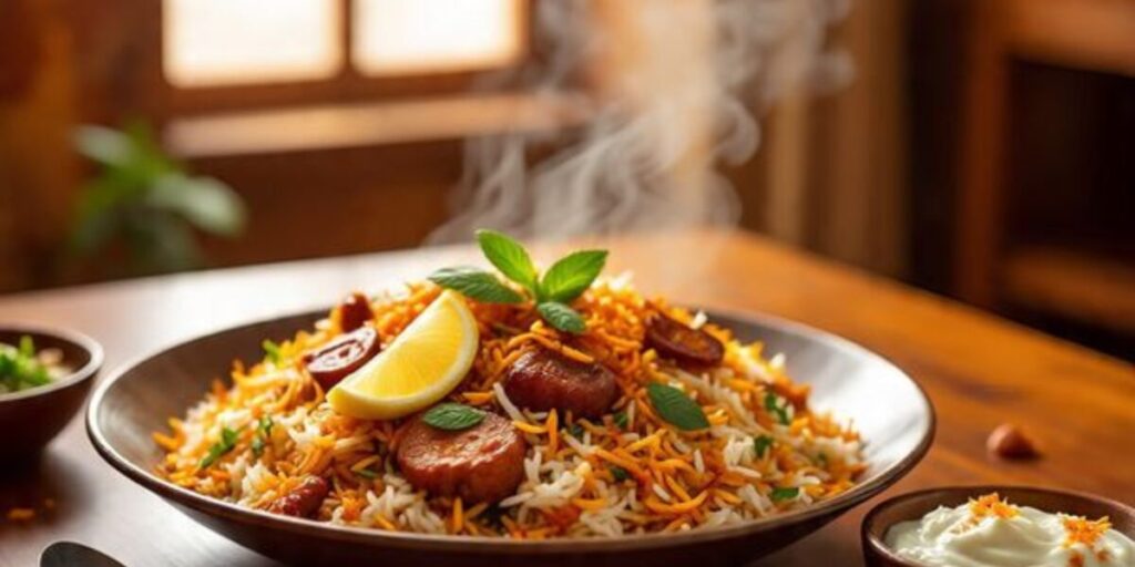 Vegetarians enjoy Hyderabadi veg biryani with paneer, soya chunks, and vegetables. There are also fusion versions like egg biryani or keema biryani. Each variation carries the same dum method but changes the main protein to suit different tastes.